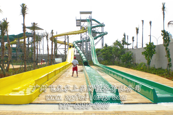 高速滑梯是高度最高、坡度最陡、速度最快、產(chǎn)生的尖叫聲最大的滑道。極速下降,徹底體驗自由落體的暢快,讓玩的人身體的每一個毛孔都充滿了瘋狂的難忘的緊張和刺激。下到底端后,巧妙的設計讓游客安穩(wěn)的在滑槽內(nèi)減速滑行,最終沖到終點區(qū)。刺激指達到五星,給游客和旁觀者都帶來刺激的感受,瘋狂的尖叫聲給整個水上樂園帶來了歡樂和刺激的氛圍,引起更多喜歡挑戰(zhàn)極限刺激的游客爭先體驗,是游客們玩完后談論和回憶的焦點話題。 高速滑梯也是水上樂園最經(jīng)典最不可缺少的水上樂園設備之一,另外還可以設計為變坡高速滑梯組合使用,讓游客在感受刺激中有不同飛馳體驗。