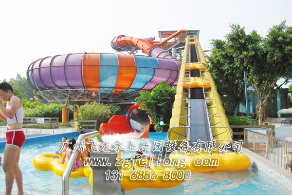巨獸碗水滑梯又稱旋渦水滑梯,占地2000多平方米,游客乘坐皮筏從16米高的平臺口滑下,通過一段長達幾十米的全封閉的管狀滑道之后,會高速沖入一個直徑 18米的巨碗,在離心力的帶動下,游客好像在太空中旋轉一樣,讓人目眩神迷,最后被吸入碗中間的洞口,游客會享受到難忘的滑行體驗,尖叫聲將伴隨滑梯的始終。該水滑梯深受青年人的喜愛,既刺激又好玩,是大型水上樂園最受歡迎的水上樂園設備。
